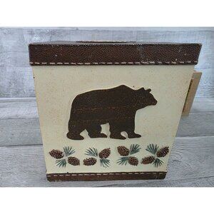 This charming rustic lodge bathroom set features a tissue box cover, toothbrush holder, and soap dish. Adorned with moose and bear designs, it brings a touch of nature to your space. Perfect for those seeking a cozy, woodland-inspired look in their bathroom.