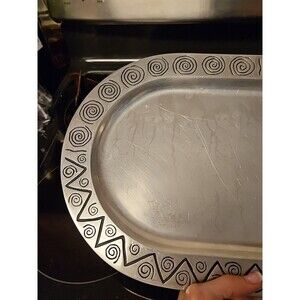 The Wilton Co Armetale Regge Pattern Oval Serving Tray Pewter Size 18.5 X 11 In