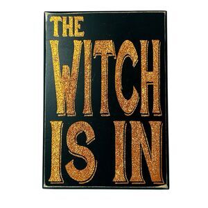 The Witch Is In Black Glitter Orange Wood Box Sign Designs by Kathy 7X10"