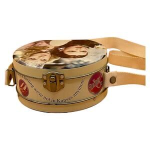 This 1999 Wizard of Oz purse-style lunchbox tin is a must-have for collectors and fans of the beloved classic film. Featuring Dorothy (Judy Garland) and Glinda the Good Witch.