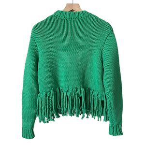 The Wolf Gang Verde Fringe Knit Heavyweight Sweater in Emerald Size XS/S