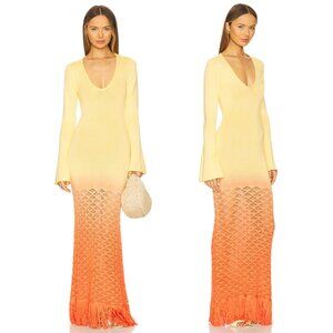 The Wolf Gang Zinna Sleeved Maxi Dress in Coral Sunset Yellow Orange Long Sleeve