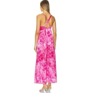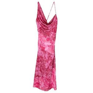 The Wolf Gang Amor cowl neck pink bubble print cross cross back formal maxi dress.