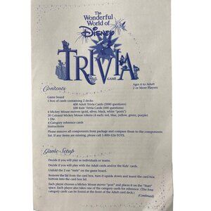 This Disney Trivia Game is designed for enthusiasts and collectors, offering hours of engaging gameplay. With a wide array of questions and interactive components, it challenges players' knowledge of Disney's magical universe. The game is suitable for ages 6 and up, and accommodates 2 or more players.
