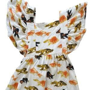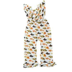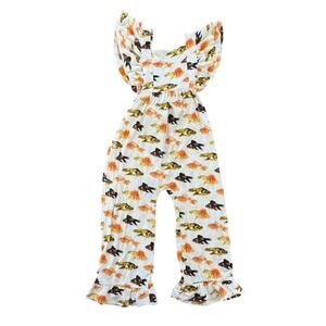 The Woods By Kate Quinn Girls’ Fish Print Jumpsuit Modal White Orange Size 3T