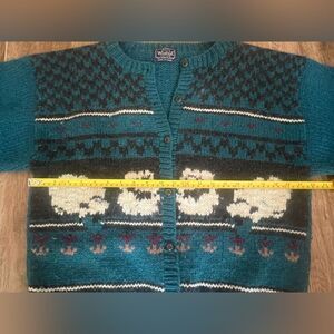 The Woolrich Woman Wool Cardigan Sheep Print Size Large/XL Faire Aisle Vintage