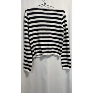 Sold Out! The Workshop Black White Striped Button Up Cardigan in size Large is a versatile and stylish sweater perfect for a variety of occasions. Made of polyester, it features a classic round neckline and button accents, giving it a polished and put-together look. The nautical and colorful theme of this cardigan makes it a fun and fashionable choice for any season, whether it's winter, summer, fall, or spring. Perfect for travel, casual outings, workwear, or business settings, this cardigan is a must-have addition to any woman's wardrobe.