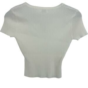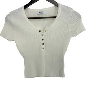 The Workshop Cropped Sweater Large Cream Short Sleeve Gold Button Womens Basic