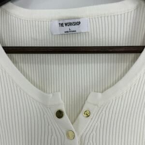 The Workshop Cropped Sweater Large Cream Short Sleeve Gold Button Womens Basic