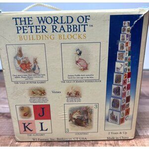 This collection of building blocks, inspired by Beatrix Potter's beloved illustrations, is ideal for children aged two and above. The set provides an educational and playful experience, blending storytelling with learning. Each block is adorned with charming illustrations, offering a delightful introduction to letters and numbers. Largest block needs to be taped, see pic