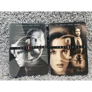 The X Files The Complete First and Second Season DVD TV Show Bundle Set is a preowned collection featuring a cardboard sleeve case with 6 discs. This set includes the first and second seasons of the popular TV show starring David Duchovny. The DVDs are in English language with subtitles available in English and Spanish, and are formatted in NTSC video format. Directed by various directors and produced by 20th Century Fox, this standard edition set is perfect for fans of TV sci-fi looking to enjoy the iconic X-Files franchise in the comfort of their own home.