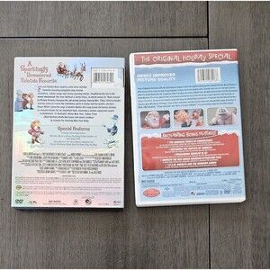 This DVD lot includes the classic holiday tale of "The Year Without a Santa Claus" and "Rudolph, the Red-Nosed Reindeer" in a deluxe edition format. The DVDs feature an English language option with subtitles available in English. The films are directed by Arthur Rankin Jr. and Jules Bass and produced by WarnerBrothers. The studio behind the films is Warner Home Video.