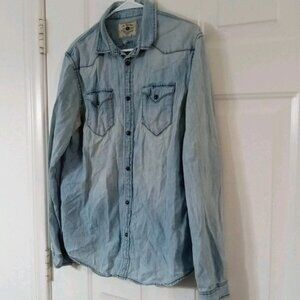 The Zara Man Denim Collection Slim Fit Pearl Snap Men's Large 42 Long Sleeve