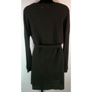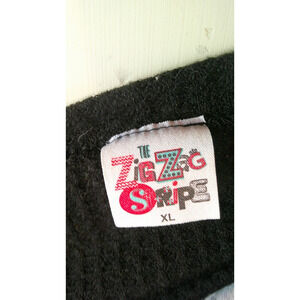 The Zig Zag Stripe Women's Black XL Long Sleeve Waffle Knit Dress with Belt