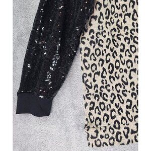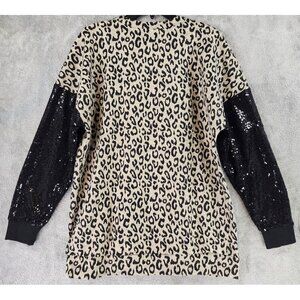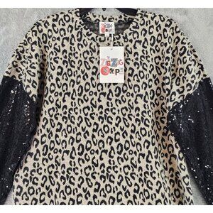 Cool & comfortable women's leopard print with black sequined sleeve accent, sweater.
