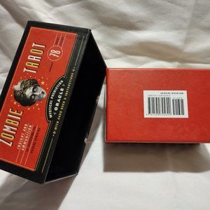 The Zombie Tarot is a crazy, campy interpretation of the classic divination system. In this “zombified” parallel universe, wands become limbs, pentacles are biohazard symbols, and the Major Arcana is full of shambling corpses. Along with the 78-card deck, you receive instructions in a 96-page full-color book; its contents explain how to survive the zombie apocalypse and forecast your future using one of three different card layouts.