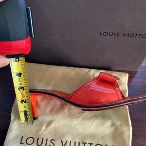 I bought it in the store and tried it once, but I haven't used it again! I put it on the shoe rack. The high heels are 2.5 inches. Genuine LOUIS VUITTON leather slippers come with a box and a dust bag