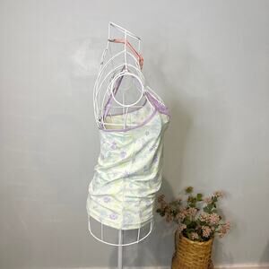 The cutest vintage y2k stretchy green & purple lace floral cami top