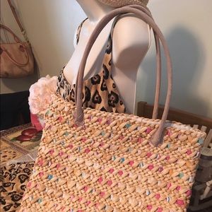 Starting with the skirt style bathing suit size 20 Lane Bryant gently used and then the woven Cappelli straw world hat with delicate feminine attached scarf and lastly the gorgeous elegant and colorful woven beach bag NWOT. The entire wardrobe or may offer to purchase separately