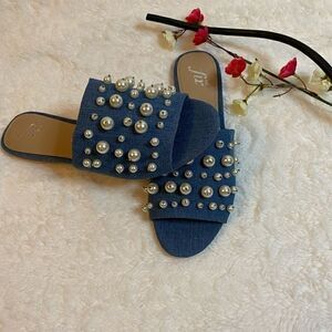 🎁The fix Faris Flat Slide Denim sandals size :9.5