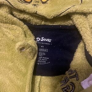 The grinch warm romper one piece hooded Santa grinch zip up footless pajama 4-5