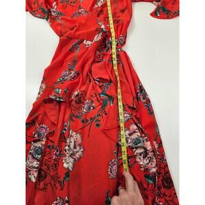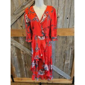 The haute project Medium boho peasant floral high low wrap dress coral red EUC