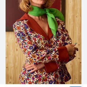 Drawing inspirations from the past, this blazer exudes a vintage vibe reborn, celebrating a 70’s inspired feminine shape. Elegance in every encore, the striking contrast collar and cuffs perfectly balance this dreamy vintage-inspired floral print. And it doesn't stop there!