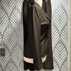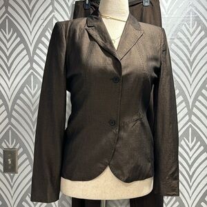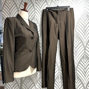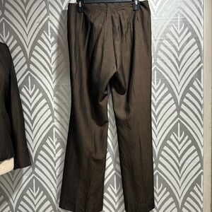 The limited pantsuit. Fabric is viscose wool and mohair. Pants are flared size 8. Length in pants is 40 inches. Inseam is 30. Jacket is a size medium and measures 20 from seam of one sleeve to the next. Excellent condition.
