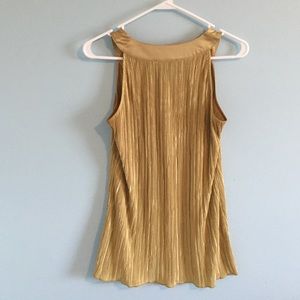 This Limited Outback Red tank top is very stylish. Perfect for transitioning between work and play, this golden top can be worn with a black pencil skirt or black pants. The material is very comfortable and stretches well. The loose fit and vertical texture of this top is very flattering. 100% polyester.