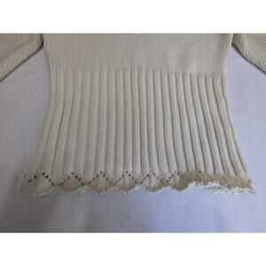 Beading and decorative knitting at hems. One strand of beads is broken. Not noticeable.