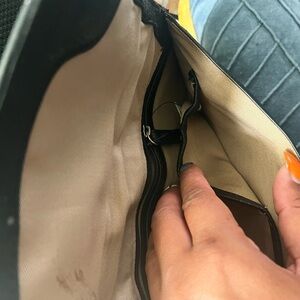This is a beautiful clutch by The Limited. The pictures don’t even match up to what it looks like in person. Worn once. There in a makeup stain on the inside lining. Probably could be wiped down just haven’t tried. This beauty needs a new home.