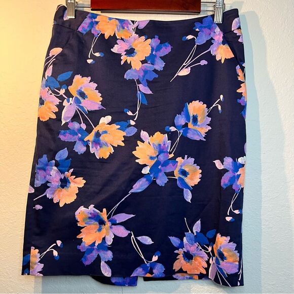 The limited, navy blue and floral pencil skirt. Pockets size 6.