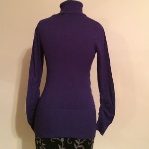 Like new condition. Turtle neck; 76% rayon, 21% nylon; Ruffles at the waist and lower sleeves; great style!