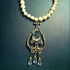 The long chain of pearls with Crystal pendant