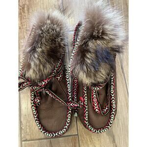 The needles Eye Handmade Animal Natural Fur Brown Moccasins Size 8 - Very Soft