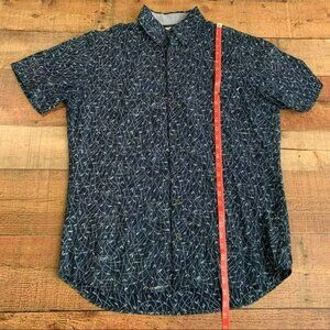 The neighborhood thieves men’s short sleeve full button down with blue leafs - L