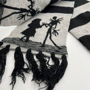 The nightmare before Christmas scarf unisex gray black fringe striped