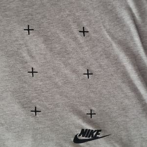The nike tee by nike...mens xl comfort fit...plus signs on the front ..smoke free pet free home...adult owned...I honestly only wore it once then washed it and it's just been sitting..super comfortable and light though ...its in amazing condtion..no holes or fraying or pilling...I still have the tags if u really want those too ask me for them and I'll include the tags..
