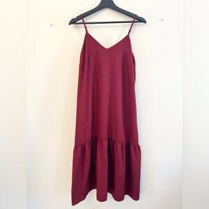 The nines by hatch maroon satin sleeveless maternity dress tiered skirt midi XS