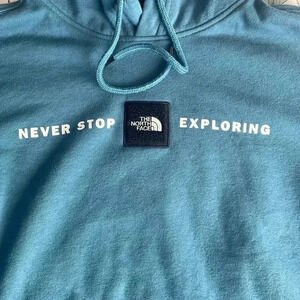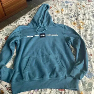 The North Face never stop exploring hoodie, color blue, black, white, size SP, in good condition