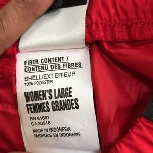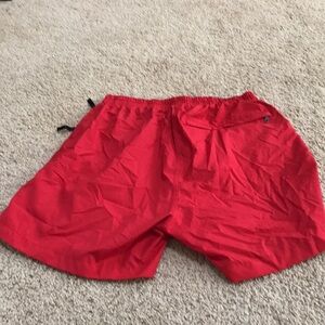 The north face woman’s large red water resistant shorts . Has elasticized waist with drawstring , zippered pocket , gently used .