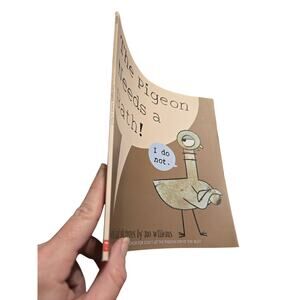 Plot Synopsis The hilarious and stubborn Pigeon is back, and he is determined NOT to take a bath, despite the reader's clear encouragement and his own obvious smell. As he tries to argue his way out of the tub—finding endless excuses about water temperature and strange creatures—readers are engaged in a fun dialogue with the character. This interactive story brilliantly captures the funny arguments children often have with themselves and their parents about daily routines.