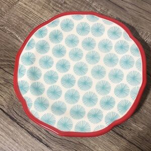 - Scalloped red rim