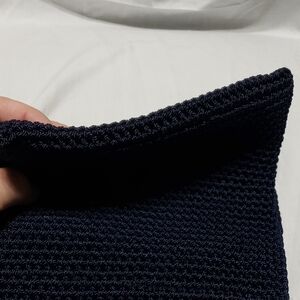 Very nice excellent condition knit crochet style bag crossbody flat with flap bag by the sak dark navy blue