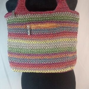 The sak rainbow colorful shoulderbag, in good condition. One small.flaw on strap as seen in pic. It need to be re sewn, ithe than that it looks great, inside looks great also! 🌈