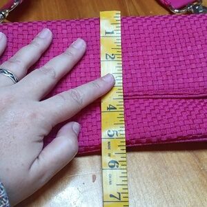 The sak pink mini handbag, evening bag, super cute,love the color. Inside is nice, when it's open all the way there's a small stain, but you only see it when opened all the way. very nice