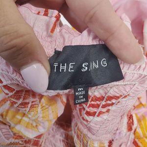 The sang mini Print ruffle off shoulder Summer Coquette dress size Medium