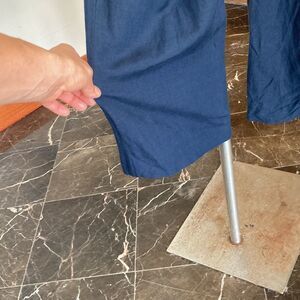 55% linen 45% viscose. Waist 14 inch. Length 41 inch. Rice 11 inch. Inseam 30 inch