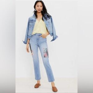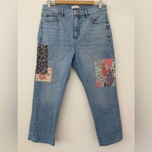 The straight leg Crop Light Blue Patchwork Jean Size 10 Soft girl Clean girl