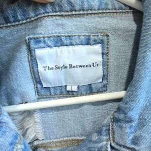 The style between us jean jacket ripped, laced, distressed size large